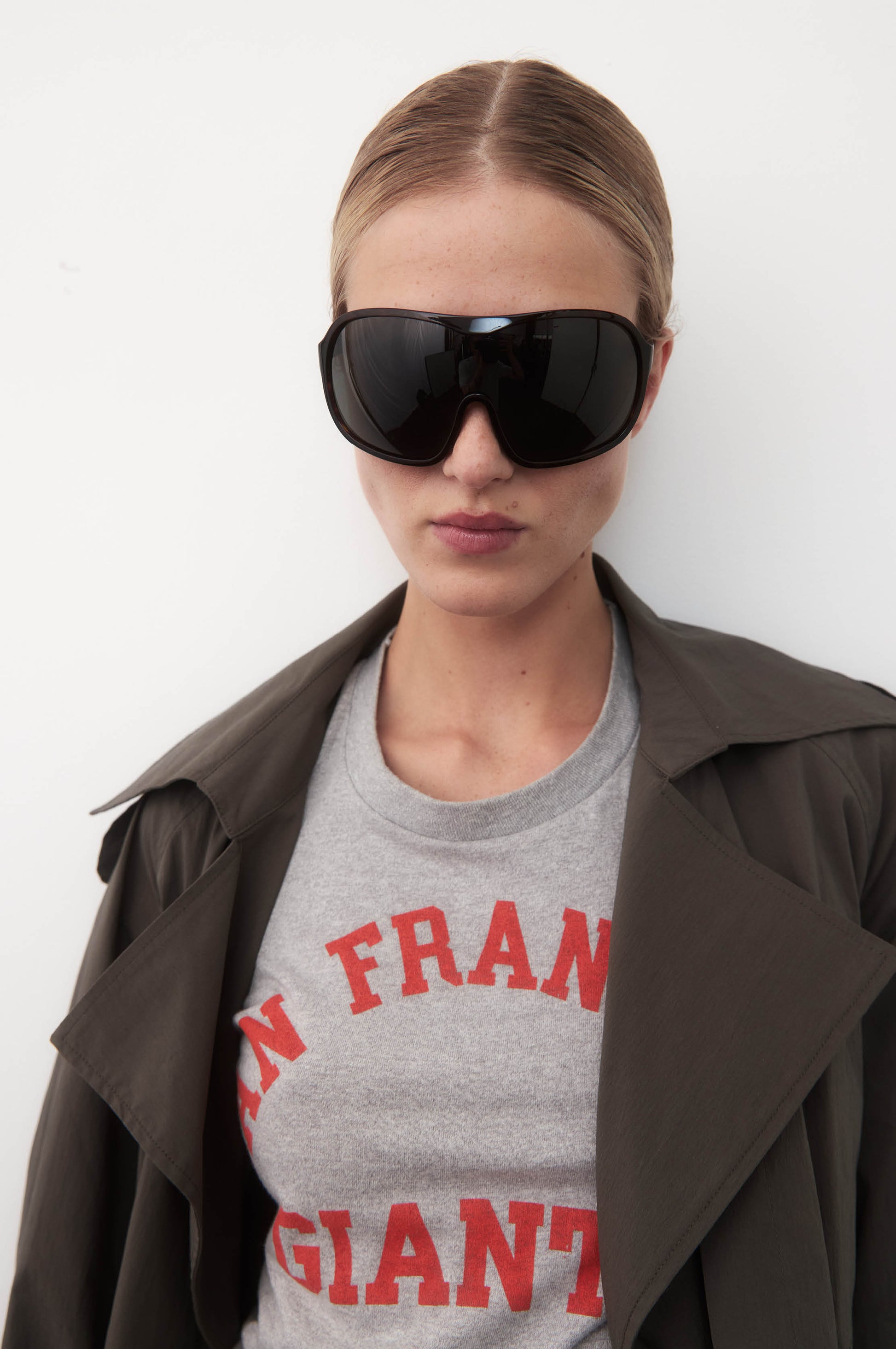 Words can scarcely capture the presence of Orielle, with its enlarged shield-like lens. Effortless in its grandeur, the Orielle is designed to transform, while its slender temples provide balance and comfort. Available in a selection of custom colours with 100% UVA and UVB protective lenses. Frame dimensions: 130mm (temple length) x 143mm (front width) x 147.5mm (lens).